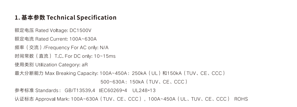 Standards and specifications: GB/T 13539.4, IEC60269-4